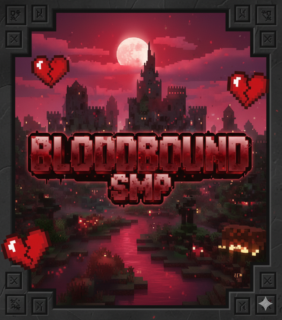 BloodBound SMP delivers lifesteal progression, regular Discord events, kits, and stable crossplay gameplay.